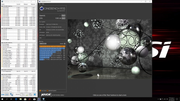 目前還是比較多人在測試的R15跑分,1305CB的分數也差不多是9750H的滿分了